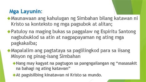 Ano ang layunin ng Simbahan? Ang tanong na ito ay madalas na binabanggit at pinag-aaralan ng maraming tao. Sa bawat dako ng Pilipinas, makikita natin ang mga simbahang naglilingkod sa mga tao at nagsasagawa ng iba't ibang seremonya at ritwal. Ngunit ano nga ba ang tunay na layunin ng Simbahan? Sa artikulong ito, ating aalamin ang kahulugan at layunin ng Simbahan sa ating buhay bilang mga Pilipino.