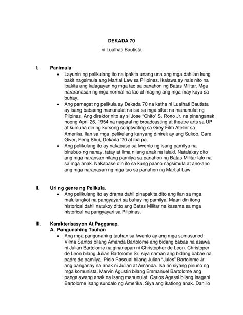 Upang maunawaan ang tunay na kahulugan ng nobelang Dekada 70, mahalagang unawain ang salitang dekada. Ang salitang ito ay nagmula sa salitang Espanyol na década, na nangangahulugang isang dekada o sampung taon. Sa konteksto ng nobela, ang dekada 70 ay tumutukoy sa panahon mula 1970 hanggang 1980. Ito ang panahong kung saan naganap ang malalaking pagbabago at pangyayari sa lipunan ng Pilipinas.