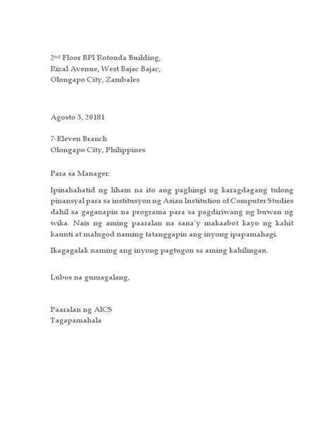 Ako po si [Pangalan], kinatawan ng [Pangalan ng Kumpanya]. Nagpapasalamat po kami sa inyong oras at interes na basahin ang aming liham.